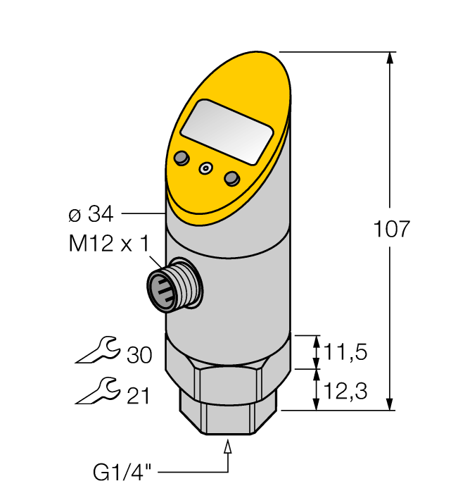 - Cable with M12 x 1 male connector, 4-pin, 150 mm