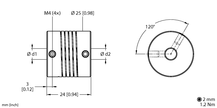 Bore diameter d1 = 10 mm, d2 = 12 mm