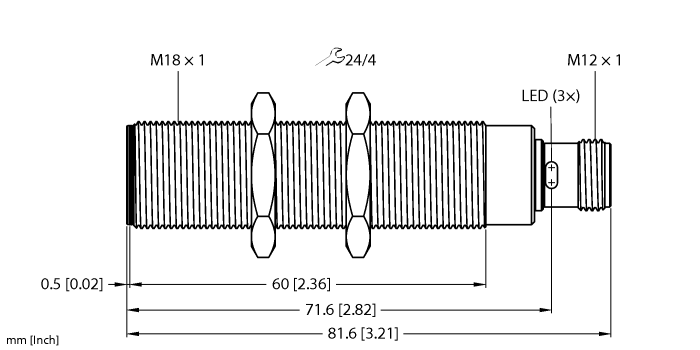Order number: 100051448- M18 × 1 threaded barrel
