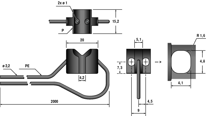 - End sleeve for sensor: Plastic adaptor for mounting on small tubes with angled beam