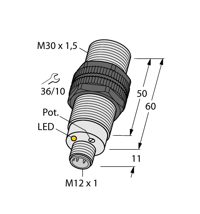 Order number: 2503052- M30 × 1.5 threaded barrel