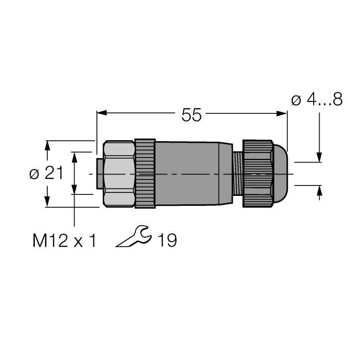 Female Connector M12 × 1, Straight