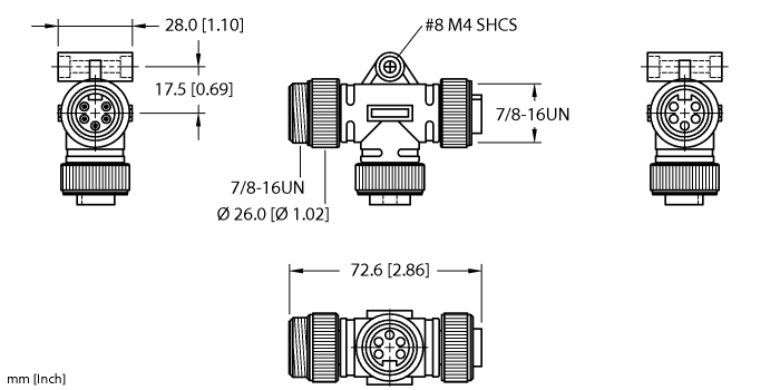 • 7/8″ male connector, straight, 5-pin
