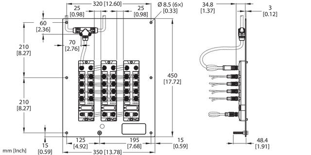 • 2 × M12, 4-pin, D-coded, Ethernet fieldbus connection