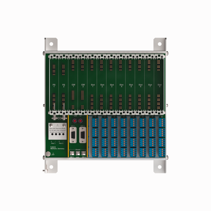 Order number: 9100680- Module rack for max. 8 I/O modules, 2 gateways and 2 power supply modules