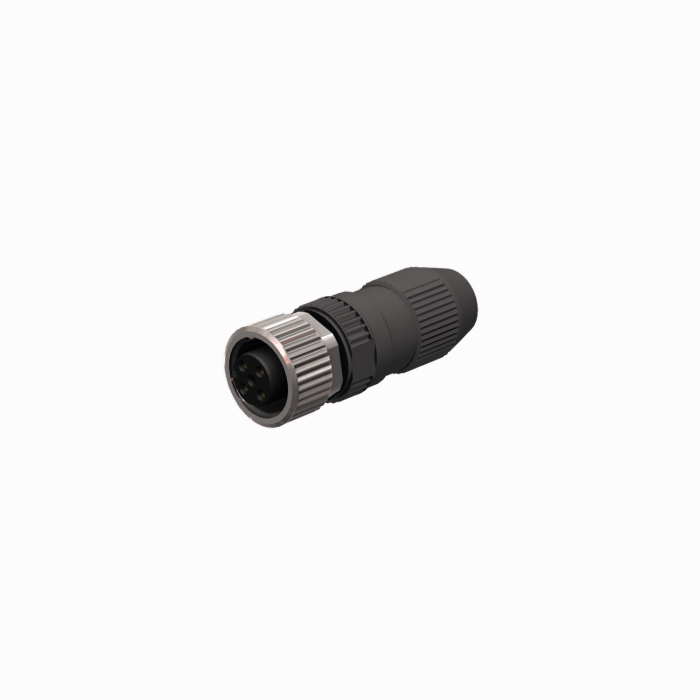 Field-wireable female connector, M12 × 1, straight, 4-pin, insulation piercing connection, cable feedthrough 4.0 to 5.1 mm, core cross-section/terminal capacity 0.14 to 0.34 mm², plastic housing, metal nut |