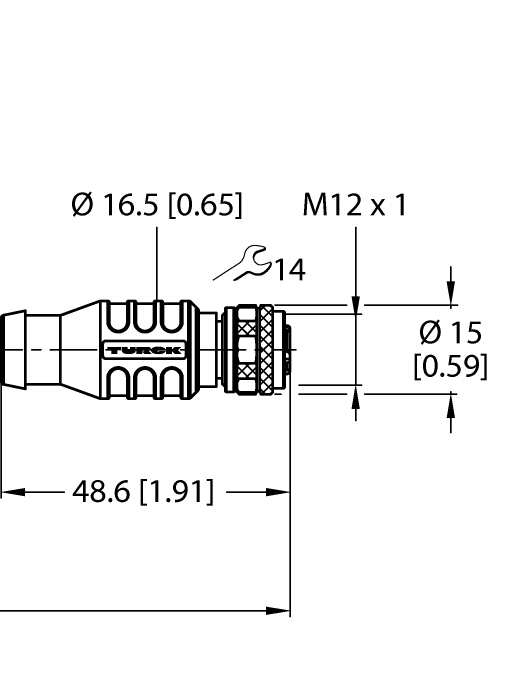 - M12 male connector, straight, reverse-keyed