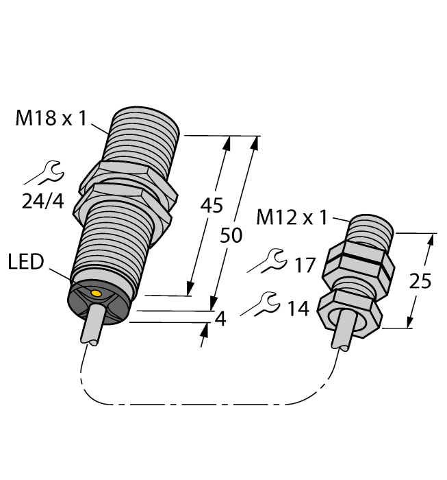 - Pigtail with M12 × 1 male receptacle