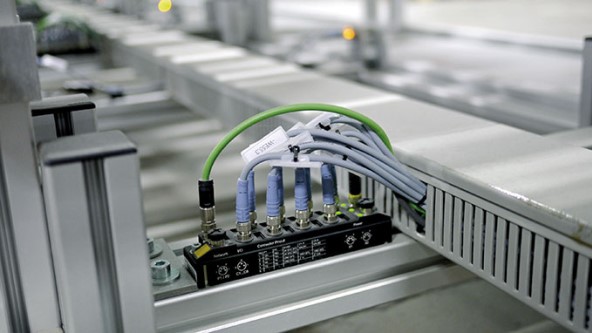 Instead of the conventional point-to-point wiring, Beil used Turck’s TBEN-S-I/O modules with IP67 protection. The Profinet modules collect the signals directly on the stacker and bring them to the box PC controller in the control cabinet. The TBEN-S modules are connected up in a linear topology.